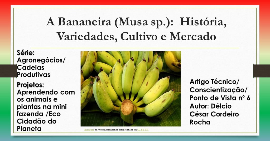 Portal AGROECOBRASIL. ROCHA, Délcio César Cordeiro. A Bananeira (Musa sp.): História, Variedades, Cultivo e Mercado. Série: Agronegócios/ Cadeias Produtivas. Artigo técnico/ Conscientização/ Ponto de Vista nº6. Publicado em 2024. Disponível em: https://agroecobrasil.com/a-bananeira-musa-sp-historia-variedades-cultivo-e-mercado. Acesso em DIA/ MÊS/ ANO