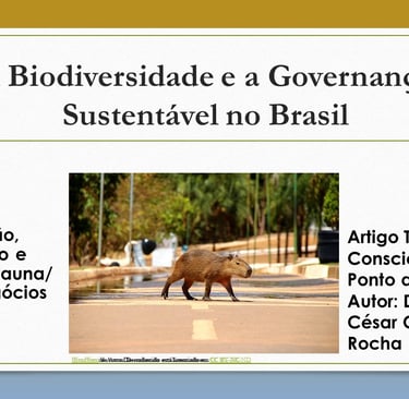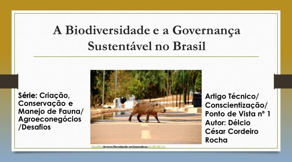 Portal AGROECOBRASIL. ROCHA, Délcio César Cordeiro. A Biodiversidade e a Governança Sustentável no Brasil. Disponível em: https://agroecobrasil.com/a-biodiversidade-e-a-governanca-sustentavel-no-brasil Série: Criação, Conservação e Manejo de Fauna/ Agroeconegócios/Desafios. Artigo técnico/Conscientização/ Ponto de Vista nº1. Publicado em 2022. Acesso em DIA/ MÊS/ ANO