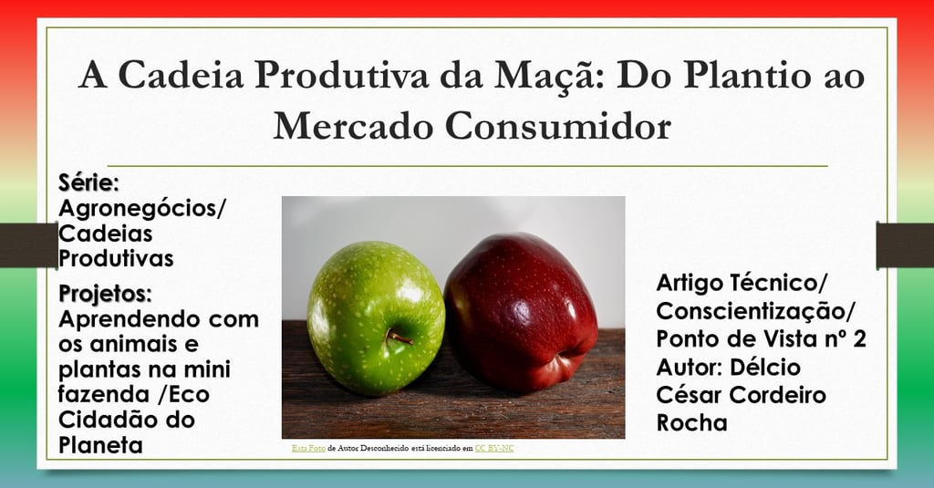 Portal AGROECOBRASIL. ROCHA, Délcio César Cordeiro. A Cadeia Produtiva da Maçã: Do Plantio ao Mercado Consumidor. Série: Agronegócios e Cadeias Produtivas. Artigo técnico/ Conscientização/ Ponto de Vista nº2. Publicado em 2024. Disponível em: https://agroecobrasil.com/a-cadeia-produtiva-da-maca-do-plantio-ao-mercado-consumidor. Acesso em DIA/ MÊS/ ANO