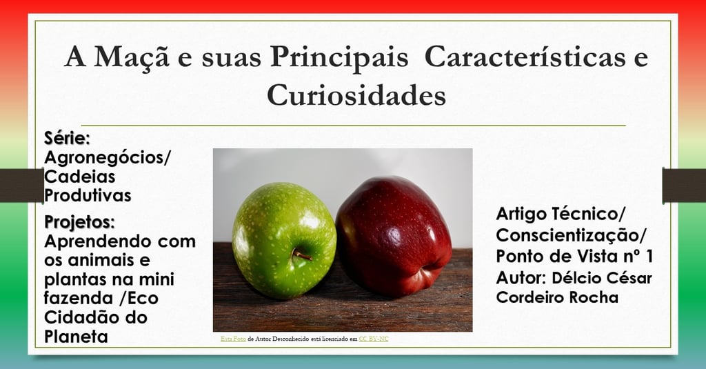 Portal AGROECOBRASIL. ROCHA, Délcio César Cordeiro. A Maçã e suas Principais Características e Curiosidades. Série: Agronegócios e Cadeias Produtivas. Artigo técnico/ Conscientização/ Ponto de Vista nº1. Publicado em 2024. Disponível em: https://agroecobrasil.com/a-maca-e-suas-principais-carateristicas-e-curiosidades. Acesso em DIA/ MÊS/ ANO