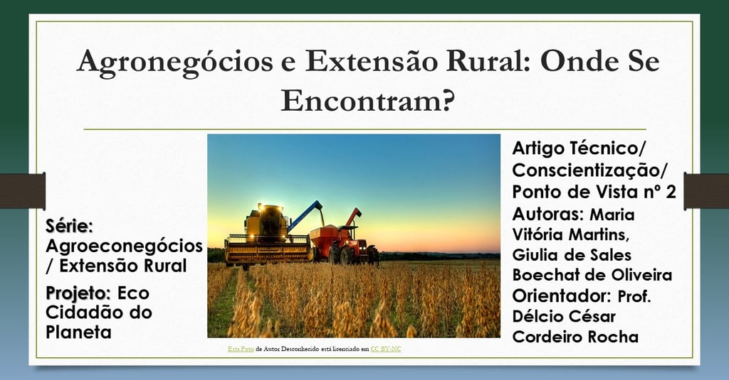 Portal AGOECOBRASIL. MARTINS, M. V.; OLIVEIRA, G. de S. B. de.; & ROCHA, D. C. C. Agronegócios e Extensão Rural: Onde Se Encontram?. Série: Agronegócios e Extensão Rural. Artigo técnico/ Conscientização/ Ponto de Vista nº2. Publicado em 2025. Disponível em: https://agroecobrasil.com/agronegocios-e-extensao-rural-onde-se-encontram. Acesso em DIA/ MÊS/ ANO