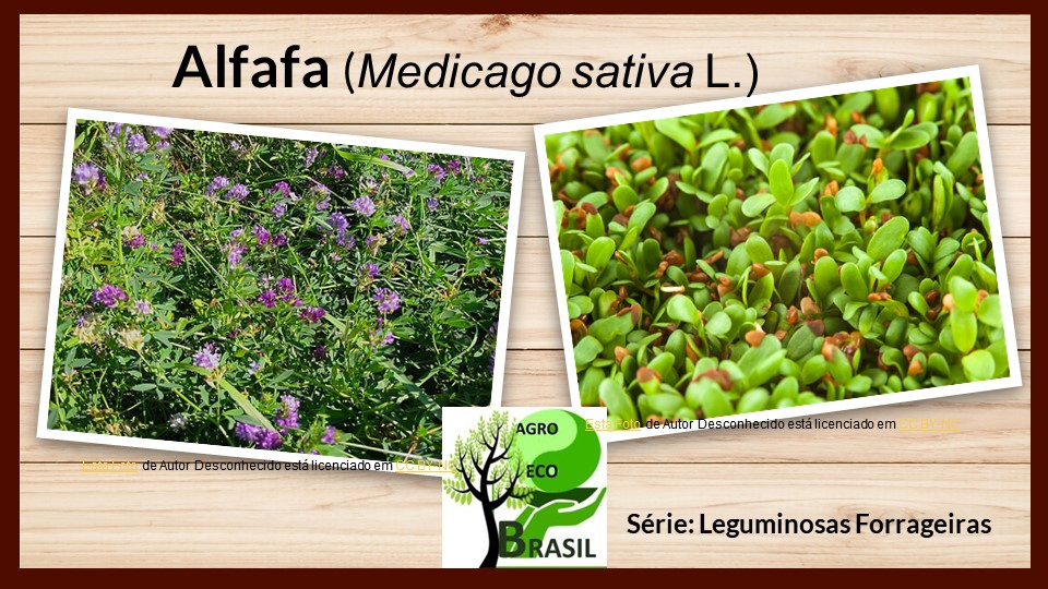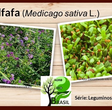 Portal AGROECOBRASIL. ROCHA, Délcio César Cordeiro. Alfafa (Medicago sativa L. ): Cultivo e Benefícios na Produção de Forragem. Série: Leguminosas Forrageiras nº12. Publicado em 2023 Disponível em: https://agroecobrasil.com/alfafa-cultivo-e-beneficios-na-producao-de-forragem. Acesso em DIA/ MÊS/ ANO