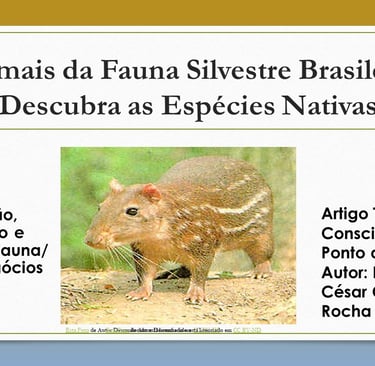 Portal AGROECOBRASIL. ROCHA, Délcio César Cordeiro. Animais da Fauna Silvestre Brasileira: Descubra algumas Espécies Nativas, Disponível em: https://agroecobrasil.com/animais-da-fauna-silvestre-brasileira-descubra-algumas-especies-nativas Série: Criação, Conservação e Manejo de Fauna/ Agroeconegócios/Desafios. Artigo técnico/Conscientização/ Ponto de Vista nº7. Publicado em 2022. Acesso: DIA/MES/ANO