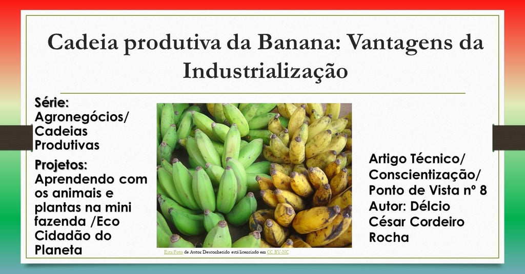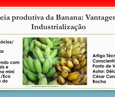 Portal AGROECOBRASIL. ROCHA, Délcio César Cordeiro. Cadeia Produtiva da Banana: Vantagens da Industrialização. Série: Agronegócios/ Cadeias Produtivas. Artigo técnico/ Conscientização/ Ponto de Vista nº8. Publicado em 2024. Disponível em: https://agroecobrasil.com/cadeia-produtiva-da-banana-vantagens-da-industrializacao Acesso em DIA/ MÊS/ ANO