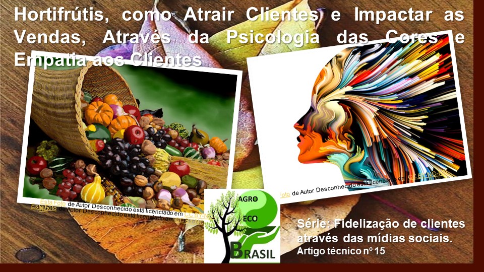Portal AGROECOBRASIL. ROCHA, Délcio César Cordeiro. Hortifrutis Como Atrair Clientes para Impactar as Vendas através da Psicologia das Cores e Empatia ao Cliente. Série: Agroeconegócios/Fidelização de Clientes/Psicologia das Cores nº15. Publicado em 2023 Disponível em: https://agroecobrasil.com/hortifrutis-como-atrair-clientes-e-impactar-as-vendas-atraves-da-psicologia-das-cores-e-empatia-aos-clientes Acesso em DIA/ MÊS/ ANO