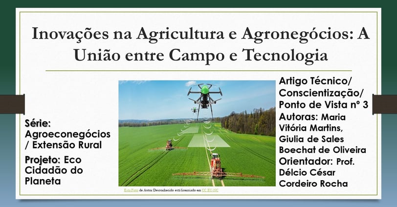 Portal AGOECOBRASIL. MARTINS, M. V.; OLIVEIRA, G. de S. B. de.; & ROCHA, D. C. C. Inovações na Agricultura e Agronegócios: A União entre Campo e Tecnologia. Série: Agronegócios e Extensão Rural. Artigo técnico/ Conscientização/ Ponto de Vista nº3. Publicado em 2025. Disponível em: https://agroecobrasil.com/inovacoes-na-agricultura-e-agronegocios-a-uniao-entre-campo-e-tecnologia. Acesso em DIA/ MÊS/ ANO