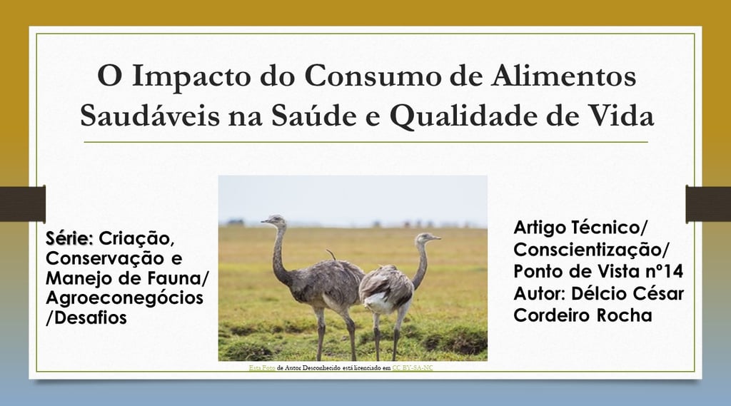 Portal AGROECOBRASIL. ROCHA, Délcio César Cordeiro. O Impacto do Consumo de Alimentos Saudáveis na Saúde e Qualidade de Vida. Disponível em: https://agroecobrasil.com/o-impacto-do-consumo-de-alimentos-saudaveis-na-saude-e-qualidade-de-vida Série: Criação, Conservação e Manejo de Fauna/ Agroeconegócios/Desafios. Artigo técnico/Conscientização/ Ponto de Vista nº14. Publicado em 2022. Acesso: DIA/MES/ANO
