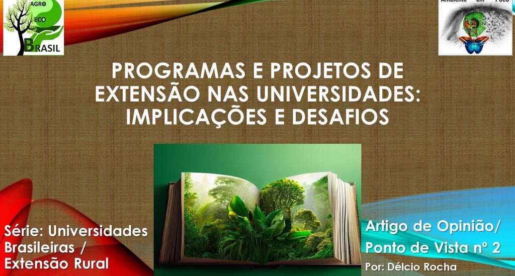 Portal AGOECOBRASIL. ROCHA, D. C. C. Programas e Projetos de Extensão nas Universidades: Implicações e Desafios. Disponível em: https://agroecobrasil.com/programas-e-projetos-de-extensao-nas-universidades-implicacoes-e-desafios. Série: Universidades em Foco/ Extensão. Artigo técnico/ Ponto de Vista/ Opinião nº2. Publicado em 2023. Atualizado em 2024. Acesso em DIA/ MÊS/ ANO